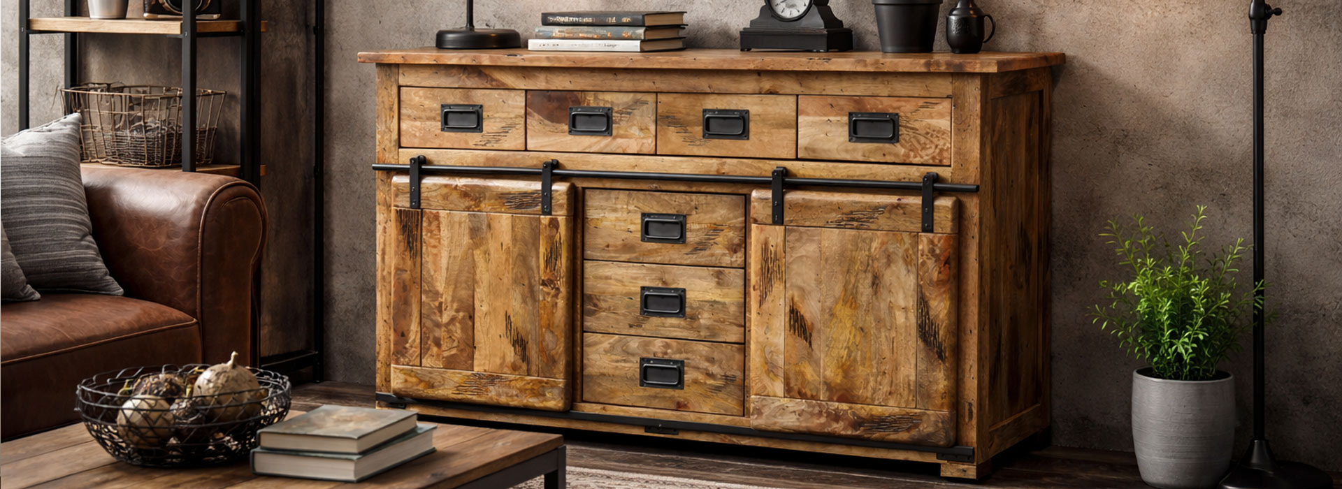 and handles to complement the distressed look of