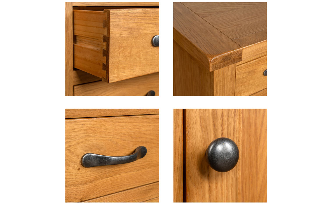 Created for us using top-grade American white oak and oak veneers. Made using traditional construction techniques, dovetail drawers and classic metal drop handles, these are just part of the charm of these understated but stylish pieces of furniture. A beautiful classic design.