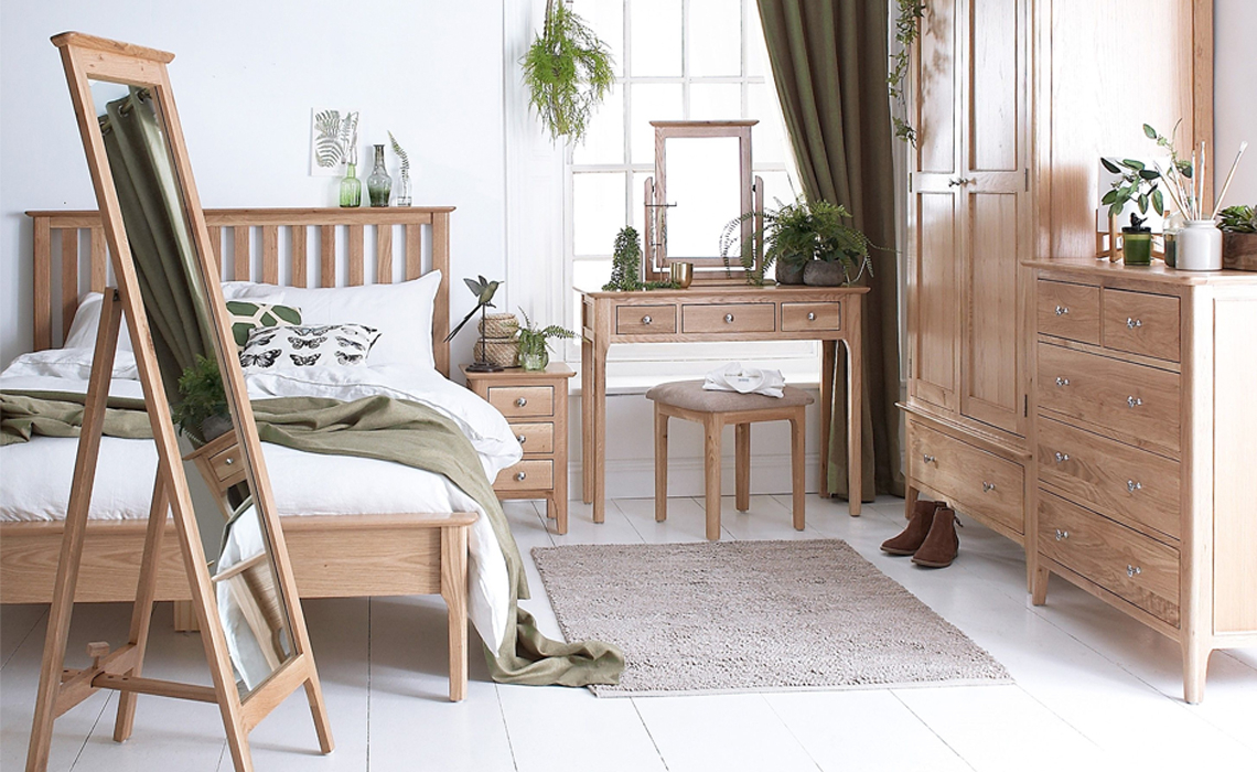 Odense Bedroom collection. This bed frame come in a natural oak finish and with its Danish style this collection captures the trend for today's living. This range is for the Scandinavian stylish person who is serious about making a home the place to be.