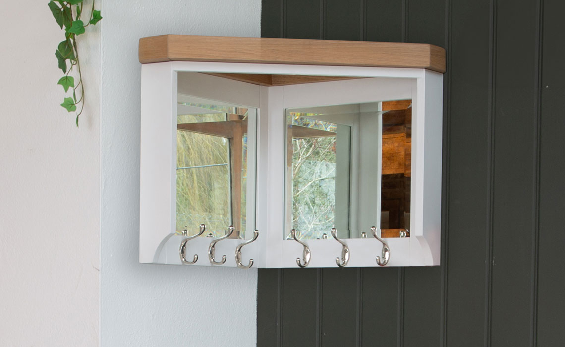 Farmhouse in style and timeless in design, The wood tops in this collection are finished with the highest quality Danish furniture oil from Woca. This ensures that the wood surfaces are dirt and water resistant. It also enhances the colour and highlights the grain of the wood. This collection also has beautiful detailed accents that perfectly complements the white painted body. Supplied with stylish chrome metal handles.